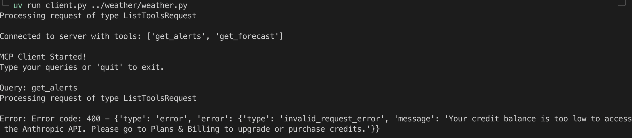 uv add mcp anthropic python-dotenv